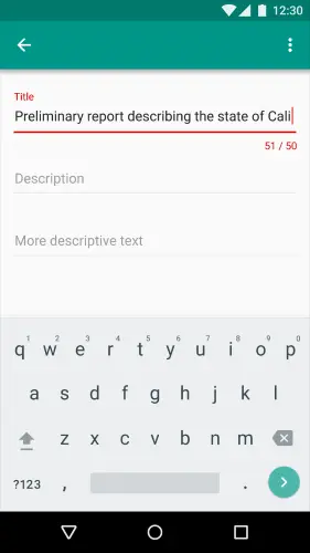 Another good example with using color is a character restriction for the input text field. Character counter with a red line showing that the restriction has been exceeded.