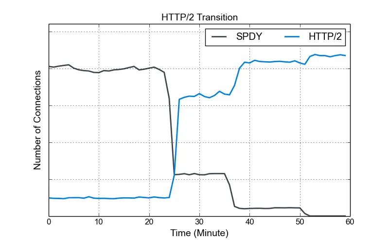 从 SPDY 到 HTTP/2 平稳过渡(60 分钟的流量情况)
