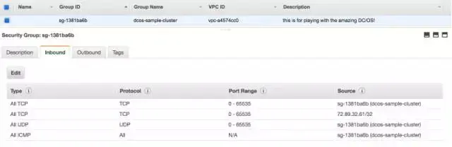 现在我们可以添加一些规则到我们的”First DC/OS Cluster“security group中。点击security group,在inbound Rules标签里点击Edit按钮。