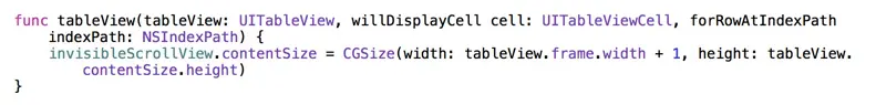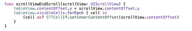 前半部分很简单,就是一个 TableView 的初始化,下面是我们的重点,我创建了一个 UIScrollView,让其 frame 与 TableView 的一致,Inset 也需要一致,然后设置代理来监听滚动事件。