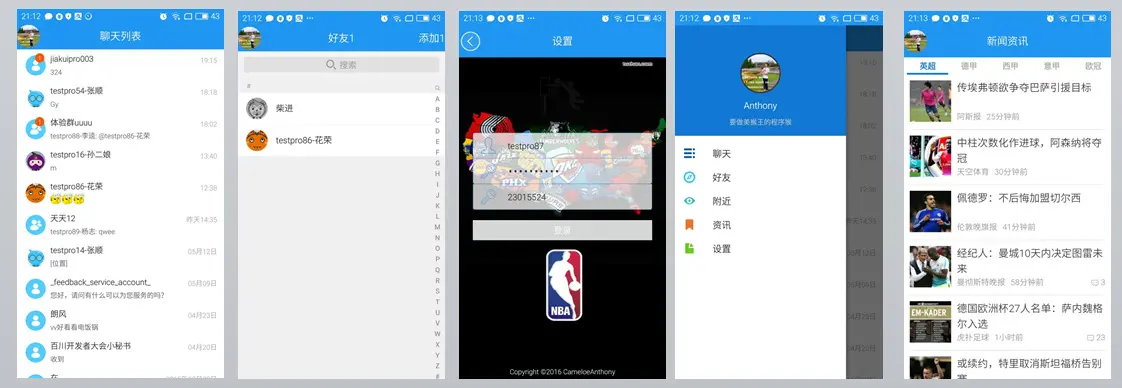 朋友圈、发布朋友圈信息、购物、游戏、设置WebView与Javascript交互、播放视频、加载HTML5页面FastJson Json转换神器、Imageloader图片加载库、android-async-http 网络请求库、图片缩放查看、加密解密