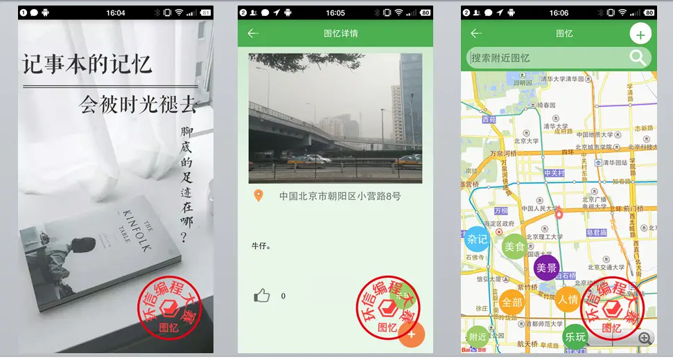 介绍:图忆是一款基于位置信息的分享与社交应用。实现了将用户记录的不同类型的事件标刻于地图之上,查看自己的记录足迹,同时用户可以轻松查看附近分享的记事,添加好友聊天,建立兴趣圈子,发现志趣相投的好友,并且用户记事可以分享到公共社区平台,分享乐趣的同时也发现了更多的乐趣,社区推荐策略让用户发现更多有价值的乐趣。
