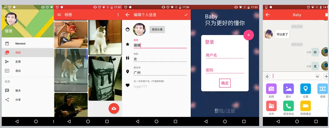 这是一款使用了Material Design和MVP的情侣之间使用的app。试用了一下。效果很不错。