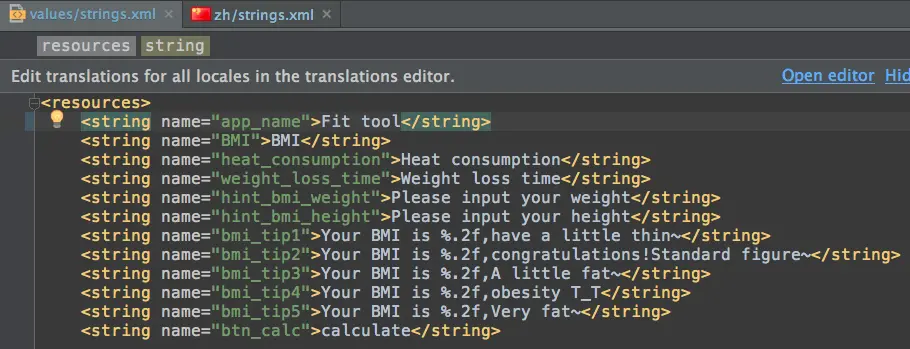 点击编辑器上的【Open editor】可以打开字符串可视化编辑窗口