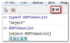 在FireFox以及Chrome下,我们执行typeof DOMTokenList的结果是:"function"; 但是在IE10下,却是:"object".