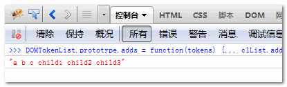 add的参数个数限制等方法好比生孩子,一次只能生一个,这符合国家要求符合规范。但是,有些有钱人,就像张艺谋,就愁孩子少,恨不能一次生他3个,咋办呢?我们可以试试对classList做扩展,例如扩展一个adds方法,可以一次添加多个类名,多个类名以空格分隔: