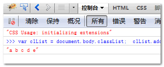 classList除了上面提到的不能级联这个无关痛痒的局限外,还有个比较头疼的局限,就是不能一次add或remove或toggle多个类名。//zxx: 级联指的是$().a().b().c()这种可以连在一起调用方法的写法。