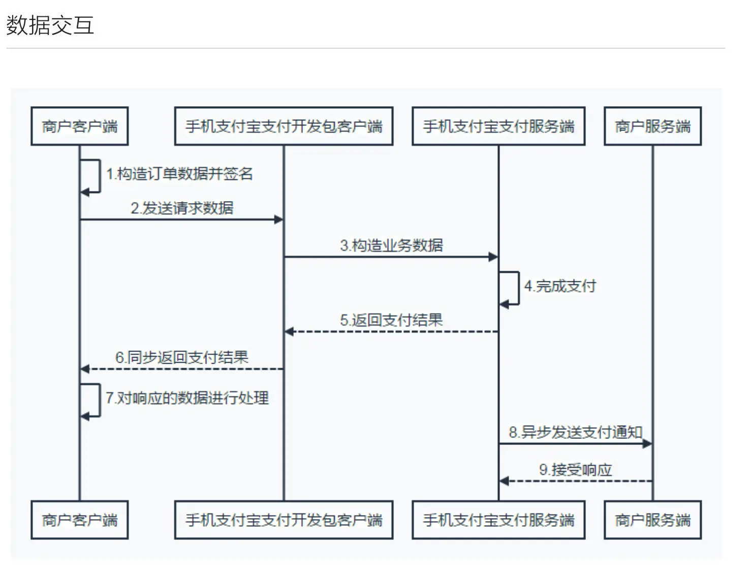 支付宝支付的功能流程相比较微信支付来说简单的很,如上面两张图展示的,我们的App(也就是商户客户端)所做的大概只有三个步骤: