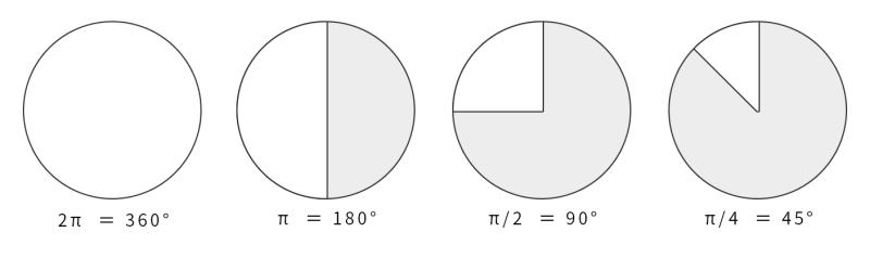 值得注意的是,在程序中,与角度相关的函数参数输入采取的是弧度制。所以 sin90° ,应该写成 sin(PI/2)。如果不熟悉这种方式,也可以用 randians 函数将角度先转换为弧度 ,写成 sin(radians(90))。