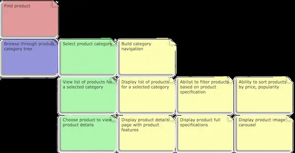 Lets take an example of an online store application’s one of the goal ‘Find product’ and build a branch of a story map to understand it better,