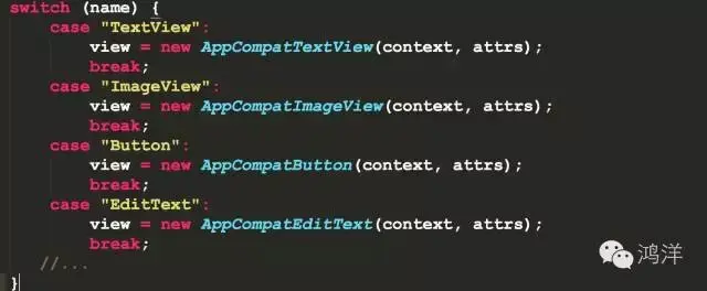 其实AppCompatActivity的setFactory也是想根据name去生成一些类,大家还记得,更新v7包的时候,忽然我们的TextView就支持了一些属性,比如tint属性,以前是不支持的,怎么能够做到使用v7包,然后就能支持且向下兼容的呢?