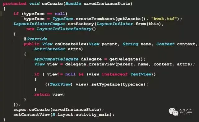 那么现在你就不必去打开以前的布局文件把TextView全部进行修改,直接在BaseActivity里面进行下面的操作就可以了: