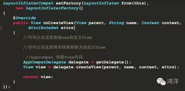 也就是说,我们可以自己设置factory中,依然可以保证appcompat中创建View的代码的执行。