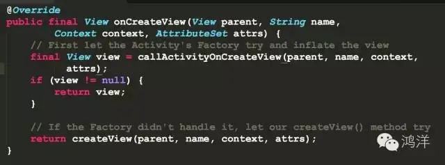 我们具体看下appcompat(下面统将v7包中的使用称为为appcompat)中设置的factory对应的onCreateView的全部代码:
