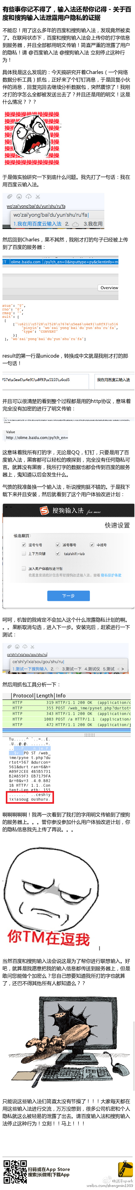 百度、搜狗输入法涉隐私问题 阴明 2016-05-26 3,556 阅读1分钟 原文链接: weibo.com 不能忍!用了这么多年的百度和搜狗输入法,发现竟然被卖了。在联网状态下,百度和搜狗输入法会上传你的打字信息到服务器,并且全部都用明文传输!严重的泄露了用户的隐私!