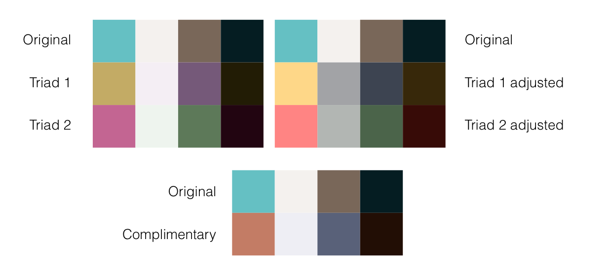 我们可以使用像Paletton这样的在线工具帮助我们发现新的色彩。在本例中,我用了两种不同工具来计算互补色和三色系。