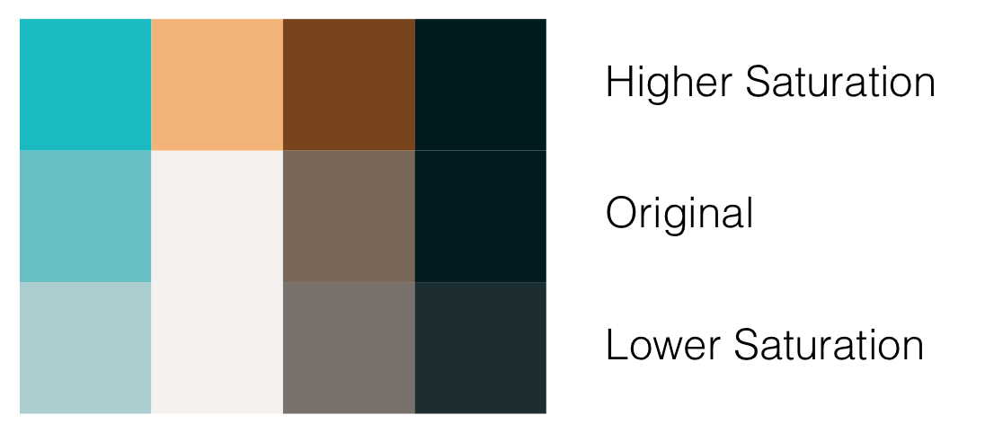 使用Sketch的调色盘,我们可以减淡或加深每一种色彩。既然有浅色和深色,我们就得稍微调节一下饱和度和明度。通常情况,调节色调时最好保持饱和度与明度近似,反之亦然。