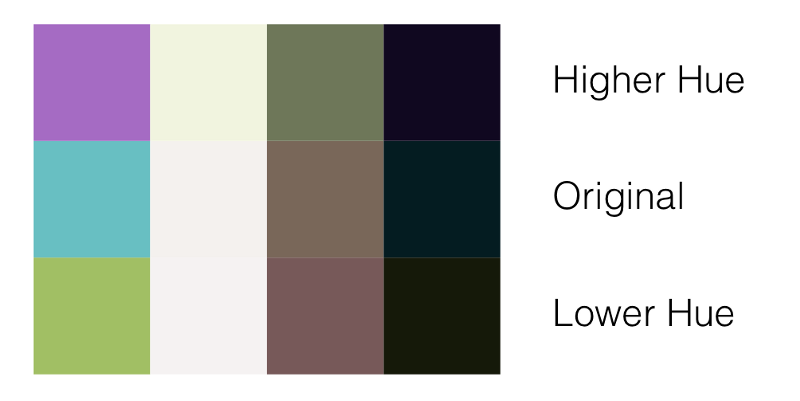 有了4种基础色彩,可以开始做一些色彩上的探索了。尽管我不是这方面专家,但我有色彩理论的基本知识,我以此来引导我的决策。