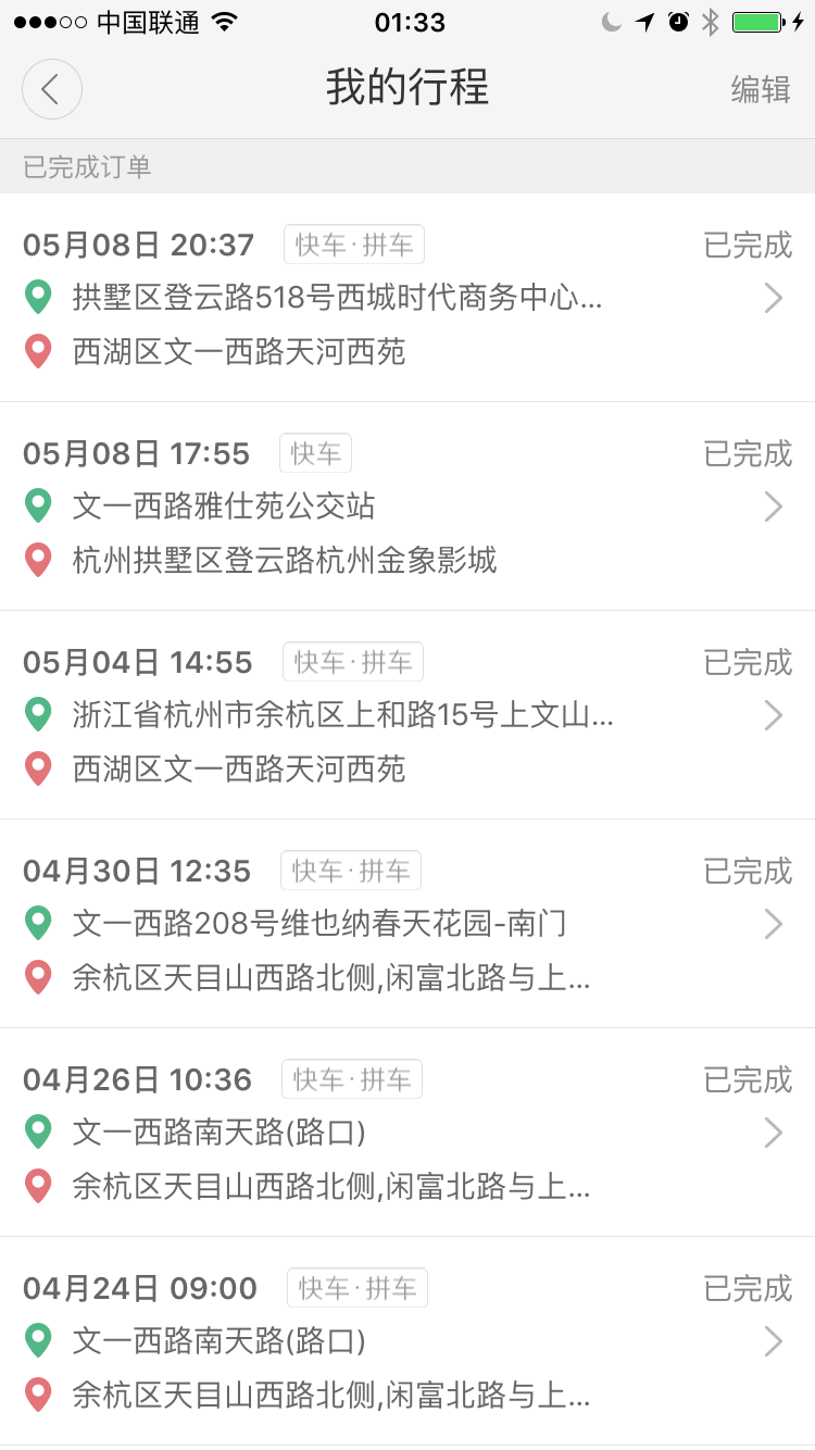 - 滴滴没有提供一种方便的返程叫车方式。