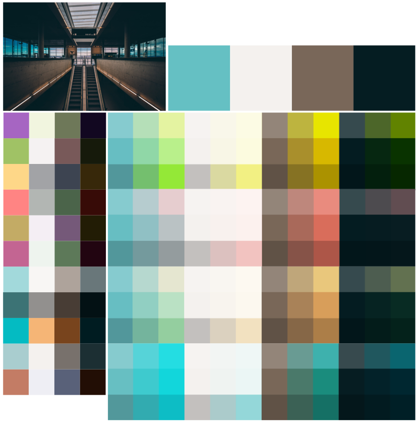 这整个过程帮助我们生成了相当多不同的颜色。如果我把最初的配色去掉,它们就是这些:
