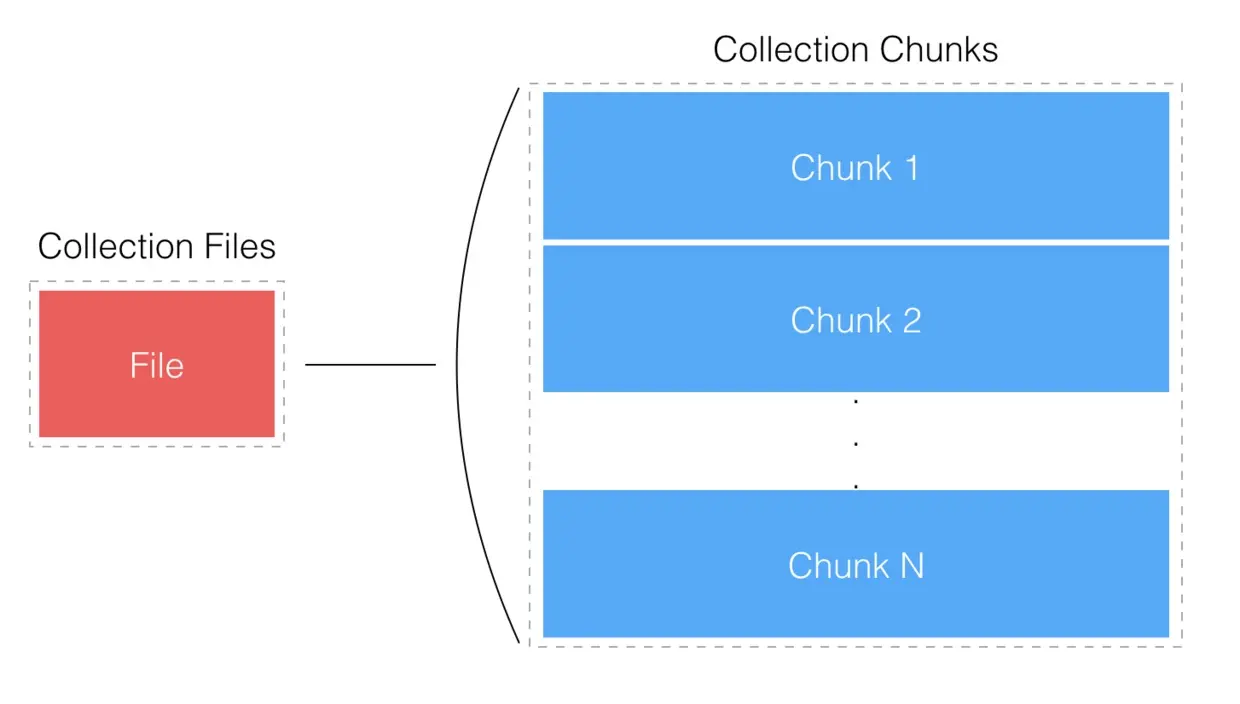 而每个 Document 依然有最大容量限制,不能无限增长下去,这个限制目前是 16MB。那么我要存大于 16MB 的文件怎么办,MongoDB 提供了 GridFS 来存储超过 16MB 大小的文件。如下图所示,一个大文件被拆分成小的 File Chunk,每个 Chunk 大小 255KB,并存放在一个 Document 中。GridFS 使用了 2 个 Collection 来分别存放文件 Chunk 和文件元数据。