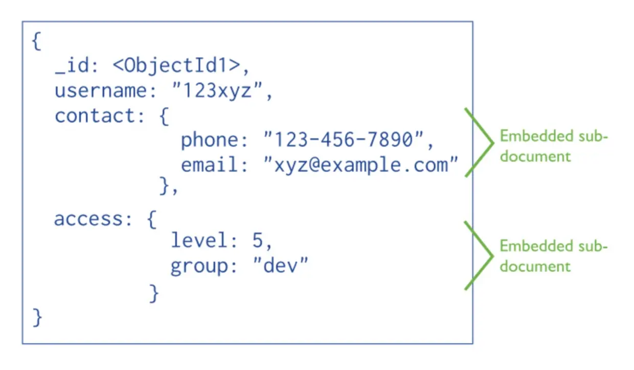 MongoDB 是一种 NoSQL 数据库,它在数据存储的形态上和 MySQL 这类关系数据库有本质区别。MongoDB 存储的基本对象是 Document,所以我们把它称为一种文档数据库,而文档的集合则组成了 Collection。与 SQL 的概念类比,Collection 对应于 Table 而 Document 对应于 Row。Document 使用一种 BSON(Binary JSON)结构来表达,JSON 大家都熟悉,像下面这样。