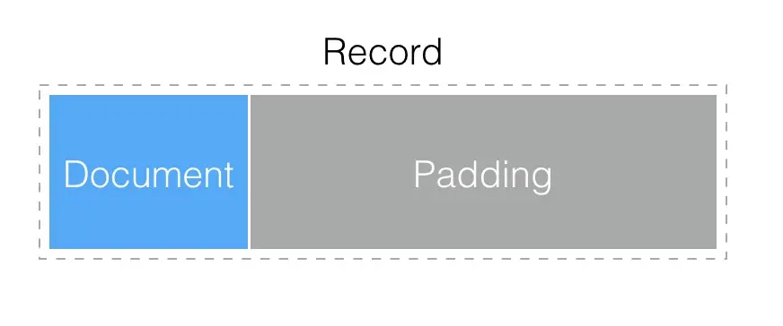 Document 在内部是如何存储的?每个 Document 被保存在一个 Record 中。Record 相当于 MongoDB 内部分配的一块空间,除了保存 Document 的内容可能还会预留一些填充的额外空间。对于写入后的 Document 如果还会更新,可能导致 Document 长度增加,就可以利用上额外的填充空间来。若业务对于写入后的 Document 不会再更新或删除(像监控日志、流水记录等),可以指定无填充的 Record 分配策略,更节省空间。