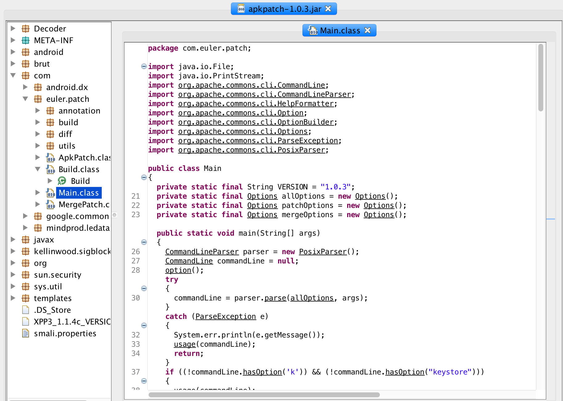 DexBackedDexFile oldDexFile = DexFileFactory.loadDexFile(oldFile, 19,