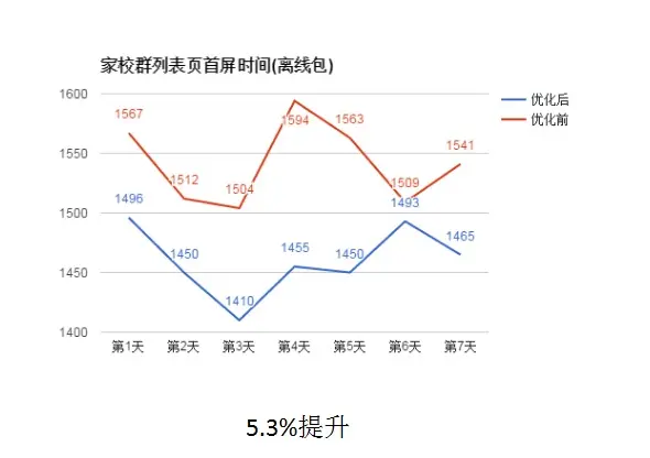 目前只有列表页发布外网了,我们比较了优化前后的首屏可交互时间,分别有18%和5.3%的提升。