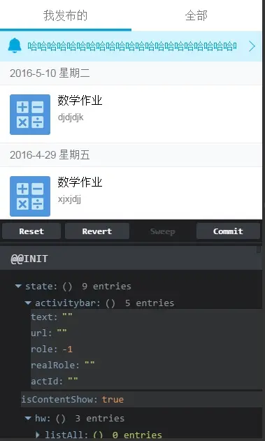 在PC端使用Redux的时候,我们都很喜欢使用Redux-Devtools来查看Redux触发的action,以及对应的数据变化。PC端使用的时候,我们习惯摆在右边。但移动端的屏幕较少,因此家校群项目使用的时候放在底部,而且由于性能问题,我们在constant里设一个debug参数,然后在chrome调试时打开,移动端非必须的时候关闭。否则,它会导致移动web的渲染比较低下。
