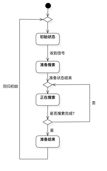 其中 正在搜索 这个状态持续时间长度是不确定的,在没有搜索完成前,应该一直处于搜索状态。