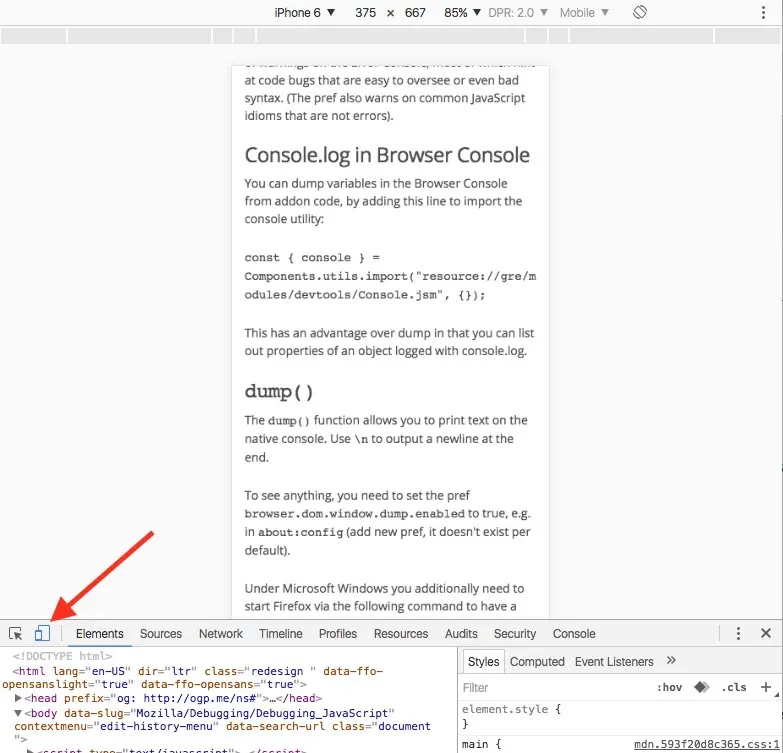 Chrome有一个非常诱人的功能就是能够模拟不同设备的尺寸,在Chrome的Inspector中点击toggle device mode按钮,然后就可以在不同的设备屏幕尺寸下进行调试咯: