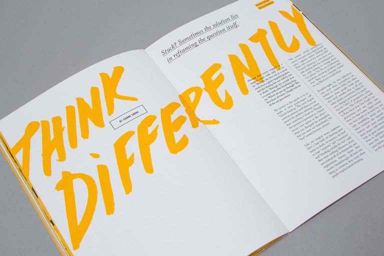 这里,Erin Lancaster通过增大设计元素使传播主题立马变得清晰,这包括同时增大夹页排版和使用大幅照片等方法。
