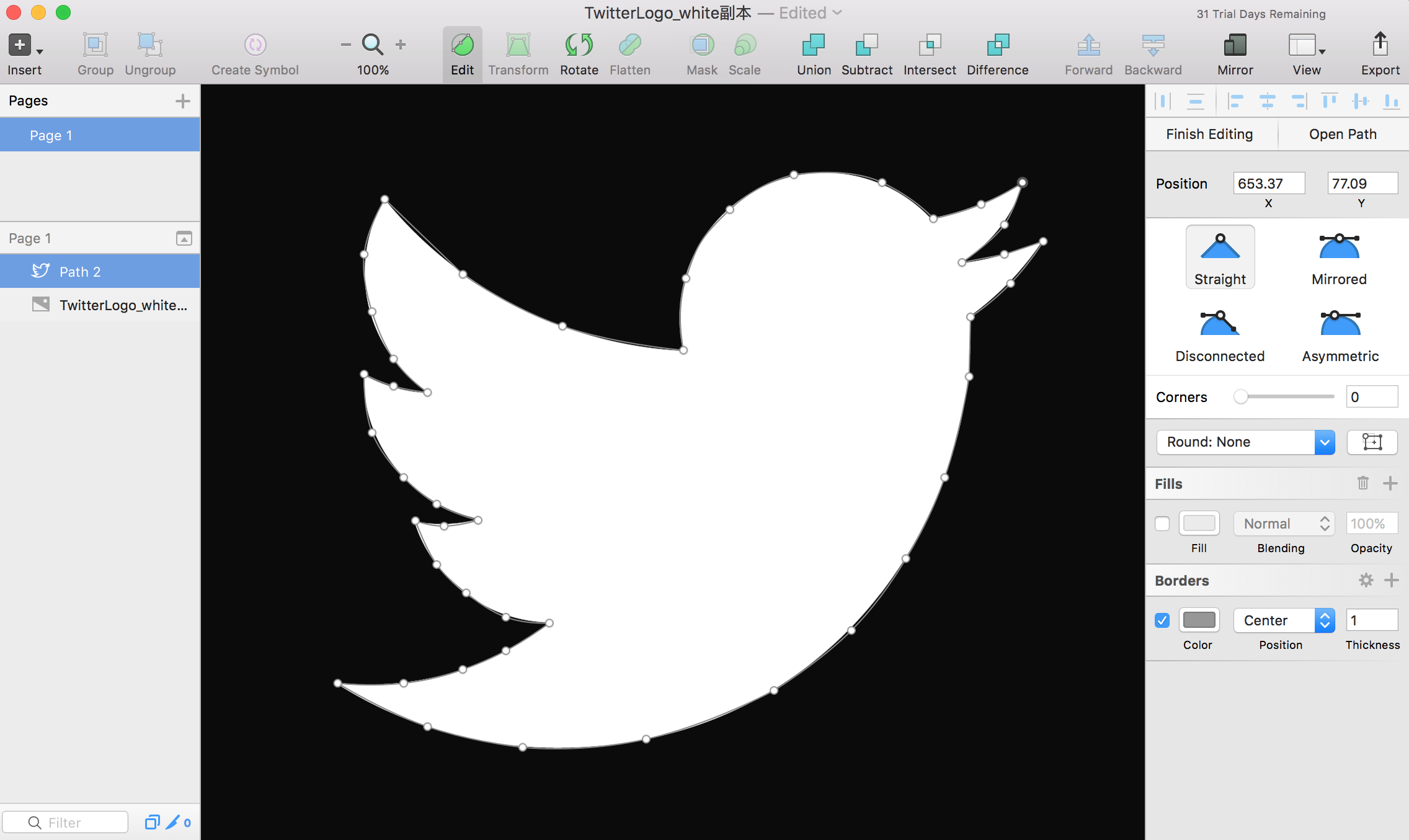 通过拖拉这些你加出来的点,可以使路径完全吻合Logo复杂的外形。拖过一番拖拽之后,就应该成下面这个图的样子了。