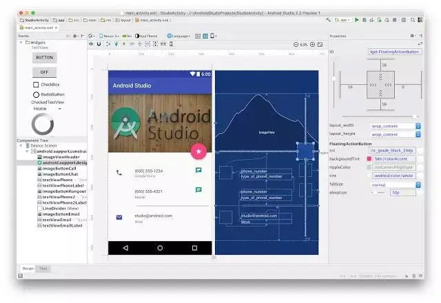 ▲ Android Studio 2.2 Preview 中的全新布局编辑器和约束布局