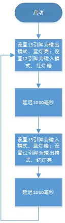 现在是要对应的PIN脚输出不同的电平,输出模式(高电平)就亮,输入模式就暗,分别控制用来亮暗,为了体现程序猿的水平,我又给大家画了一个简单的软件执行流程图: