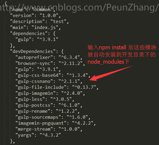 npm install gulp --save-dev 或 npm install gulp -D