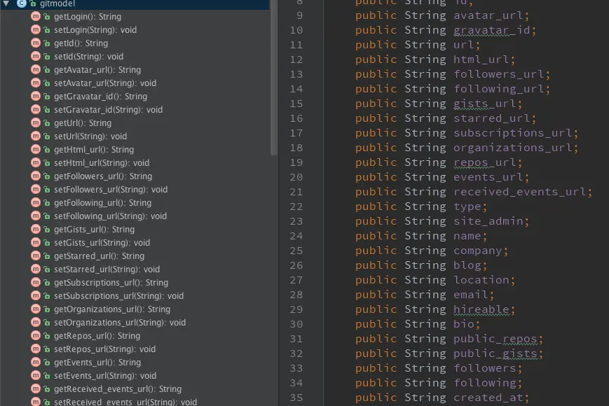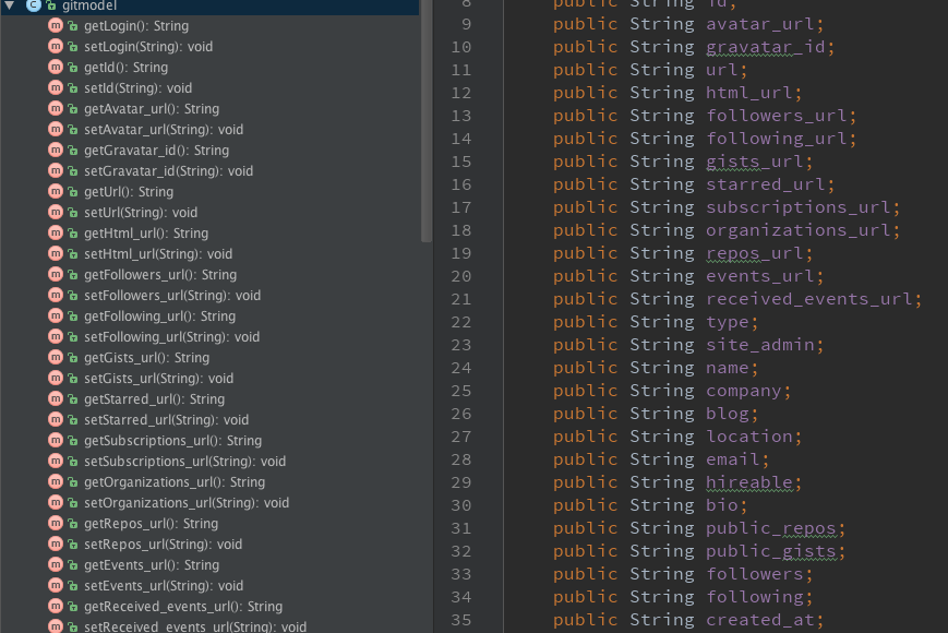 但是如果是返回数据为json数组的话我们就需要注意,这里具体怎么用还要根据返回数据以及我们的model来确定,倘若model对应json中的对象,便用Call< List< gitmodel>>,倘若对应json数组,用Call< gitmodel>。多的不说了,自己体会体会。