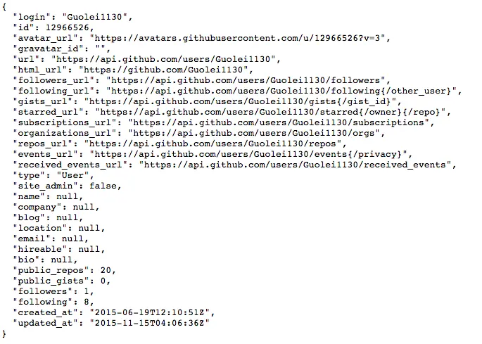 比如我们想去这个网址上获取json数据。api.github.com/users/Guole…
