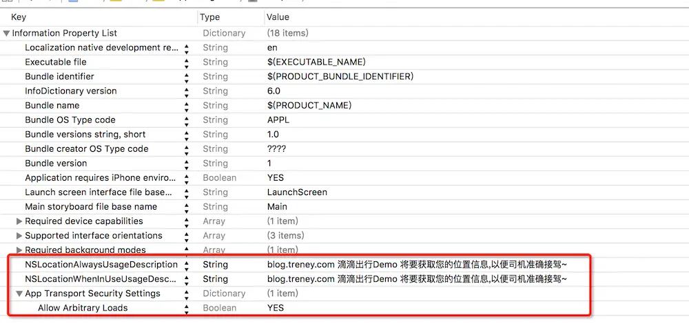 添加到 info.plist 里面的字段