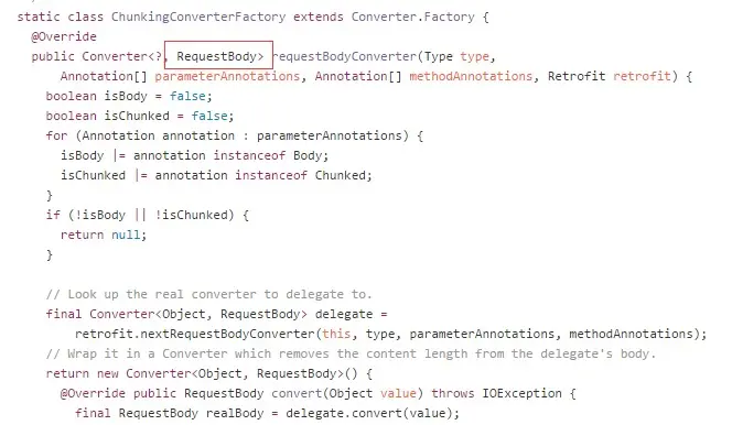 发现没?转化器中出现了RequestBody,这让我瞬间有了想法,没错,我们模仿下载的办法,同样的,将这个类改造下。