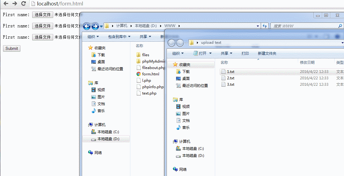 - 所有的文件都会存在$_FILES全局变量中,多个文件的情况下,格式如下
