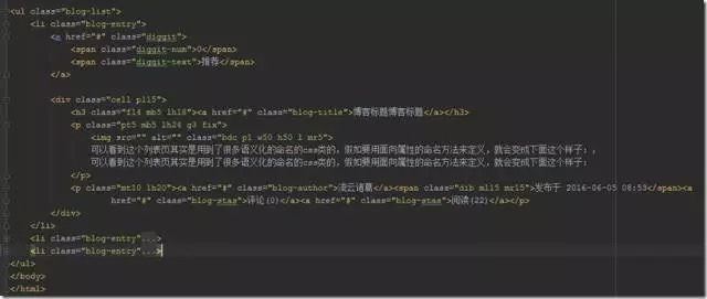 为了说明这个命名方法的作用,我做了一个demo,以博客园博客列表页来说明如何应用这种命名方法。先来看博客列表页的结构: