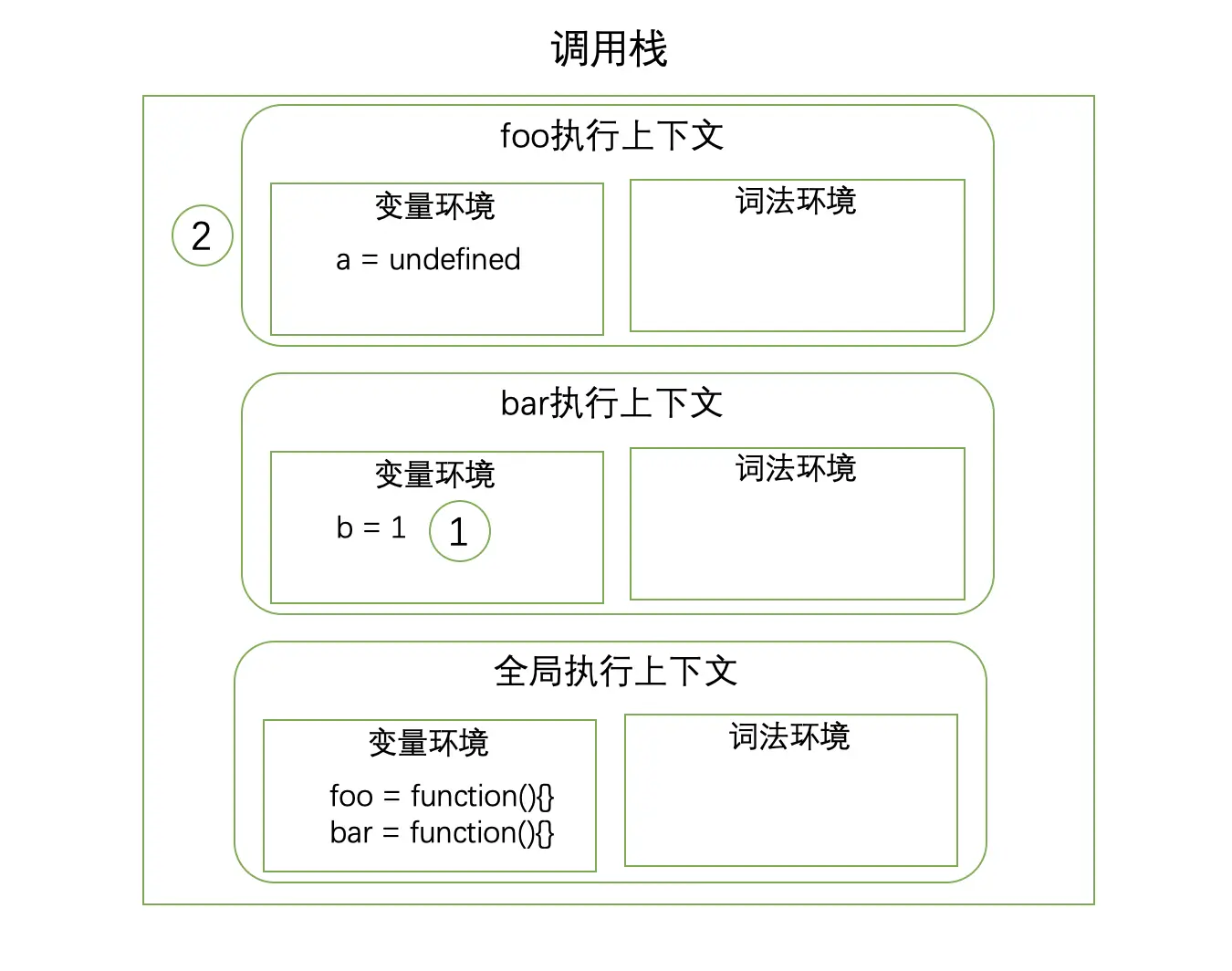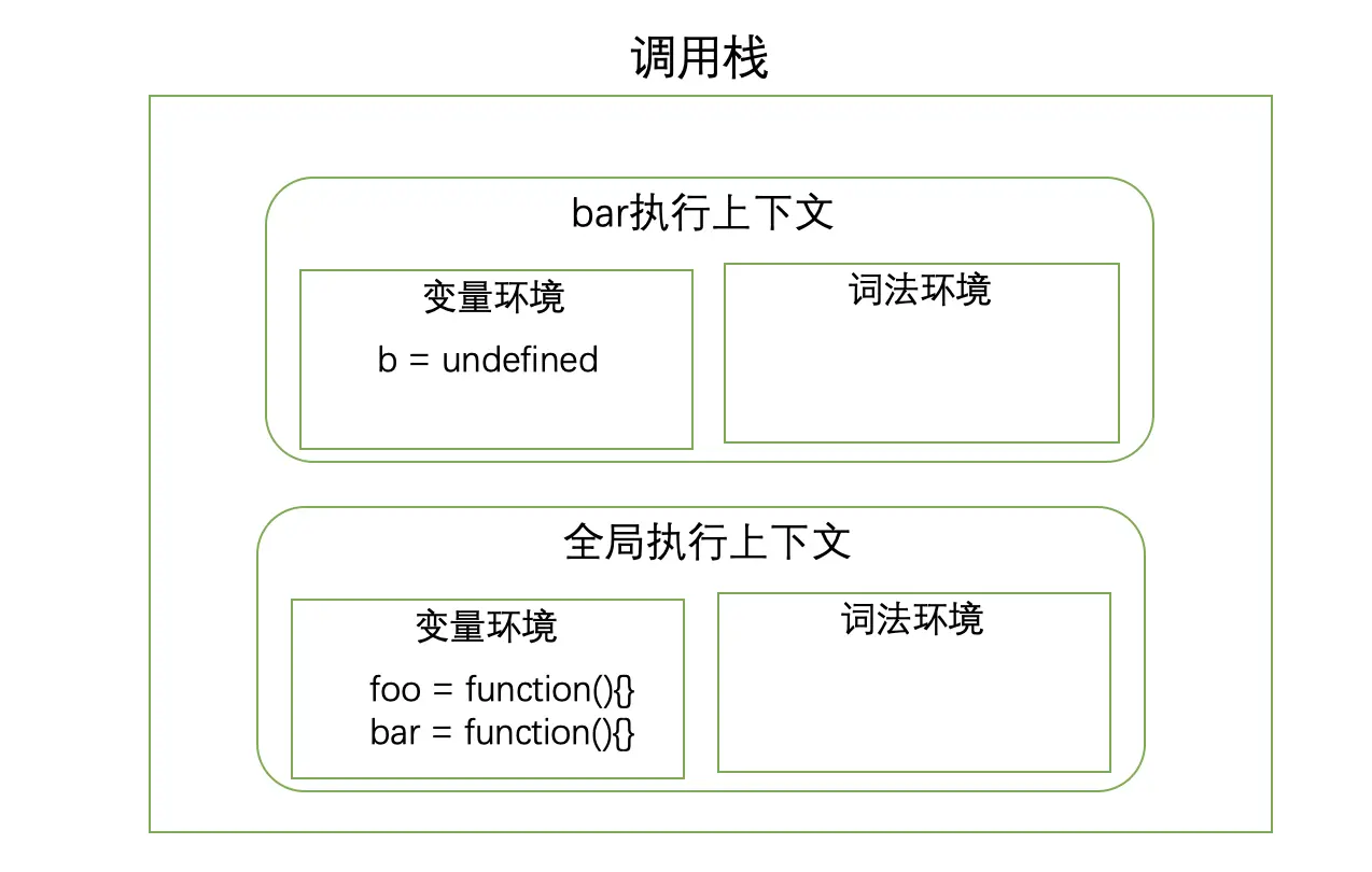 - JavaScript引擎会将var变量声明和函数声明等的变量提升内容放在变量环境中。