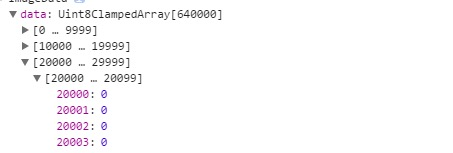 此时,我们看看上面绘制蓝色矩形的数据变成什么样了,首先数组长度变为[160000],刚好是上面的8位的四分之一