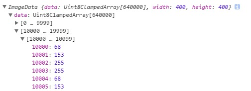 我们看到,这里的imgData是一个对象,该对象的第一个属性就是data,是一个8位无符号整数的类型化数组Uint8ClampedArray具体内容可以查看msdn.microsoft.com/zh-cn/libra…