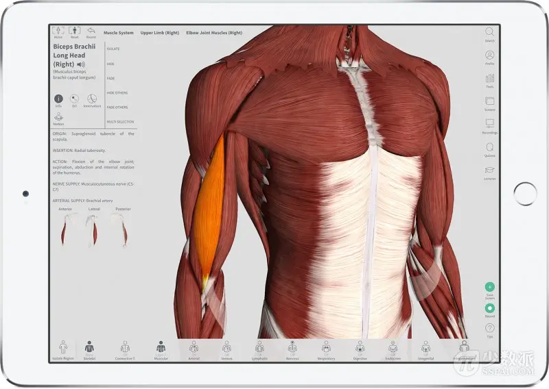 Complete Anatomy 是一款面向医学生和医务工作人员的解剖学习类的 iPad App。苹果最青睐的是,Complete Anatomy 最大程度地利用了 iOS 和 iPad 的硬件能力,并向用户提供了令人惊艳的高保真 3D 人体模型,同时又保证了应用优秀的性能和简洁易用的界面。