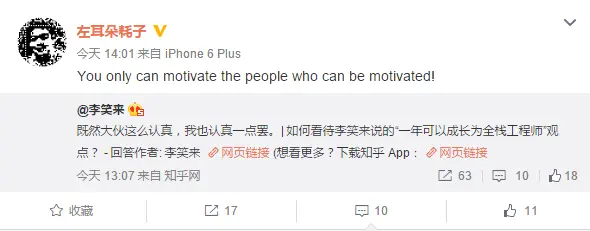 后来李笑来老师在回应文章里面说了一大堆关于自己当年如何从会计专业毕业然后各种跨领域成为一个牛逼人的事实以及亲身经历的各种示例表明,学编程就跟学车一样真的没什么难的,并且在文章结尾很机智的说自己对于全栈工程师的另一种理解。