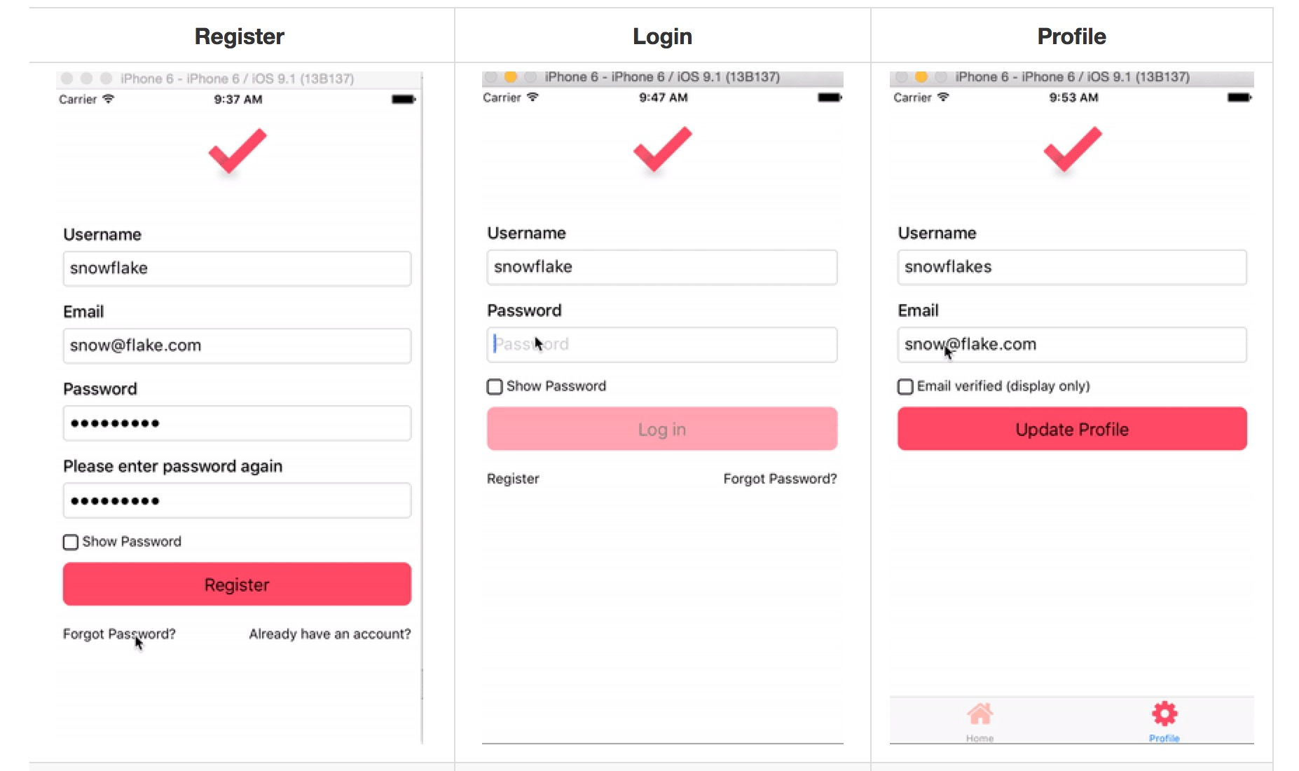 A React-Native starter mobile app, or maybe just an example, or maybe a boilerplate (you decide) for iOS and Android with a single code base.