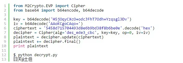 通过log,很容易就能看出来evilapk400使用了DES加密。通过log我们获取了密文,Key以及IV,所以我们可以写一个python程序来计算出最后的答案: